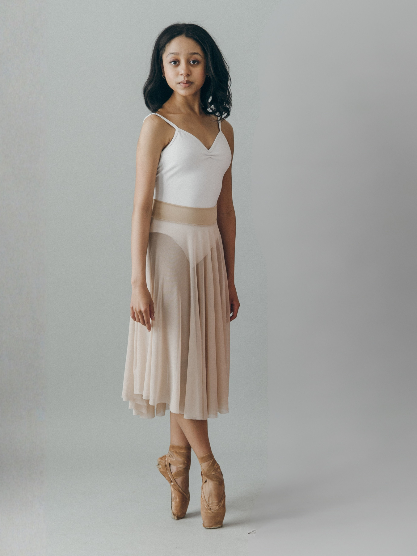 Flow through your practice with the Cashmere Grace Skirt—soft, light, mesh layers in a delicate neutral tone for elegant movement and effortless style.