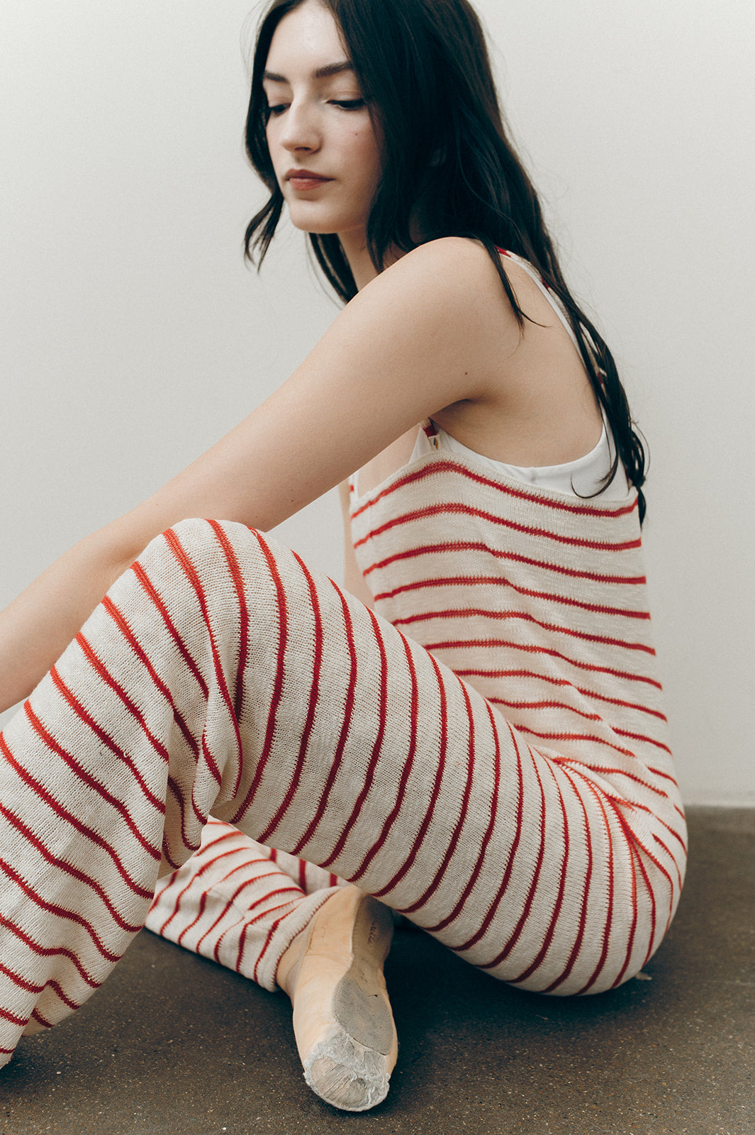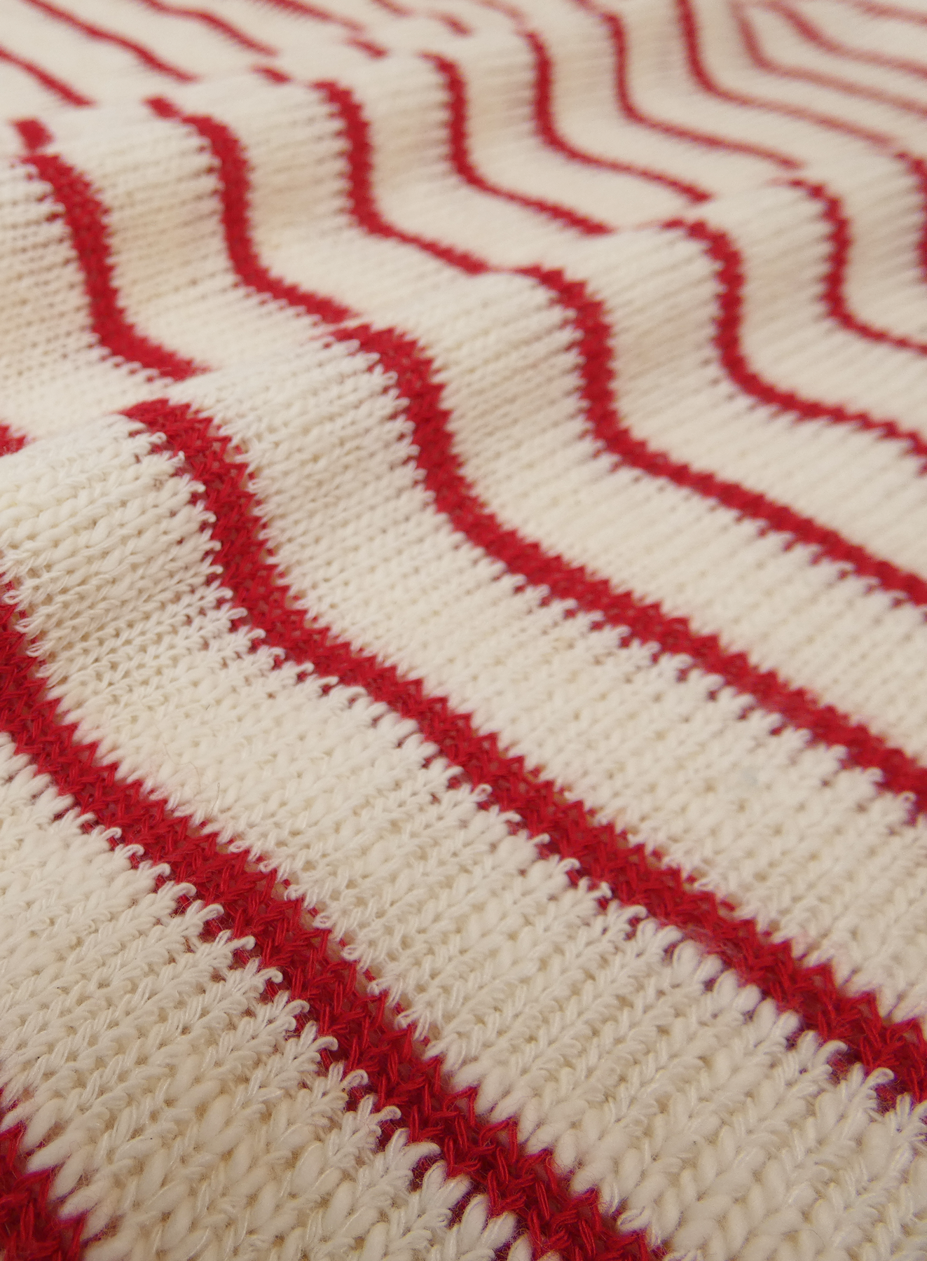 The Mingle Jumper offers a red and white stretch and soft stretch fabric. Perfect for staying cozy during those long rehearsal days or chilly-day casual wear.