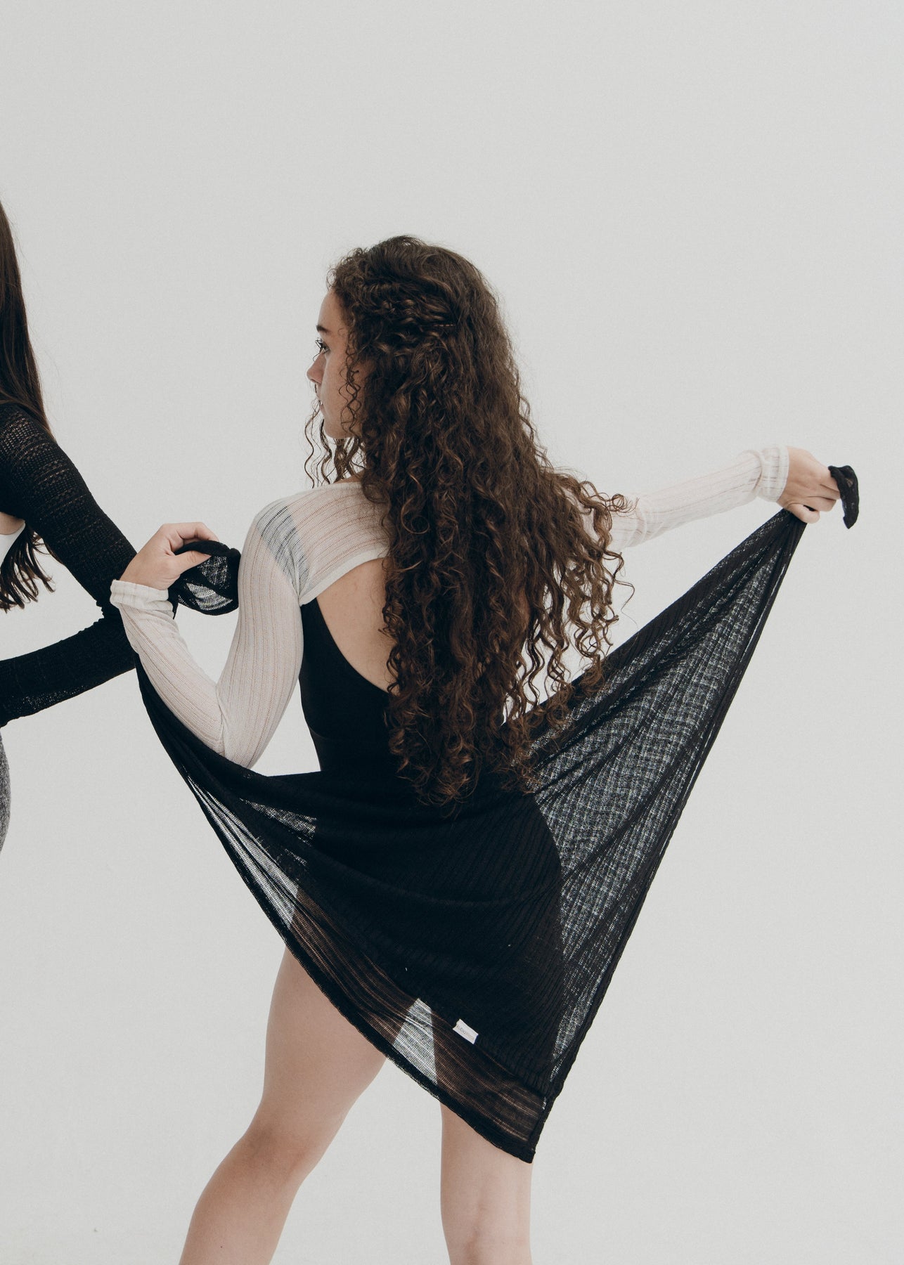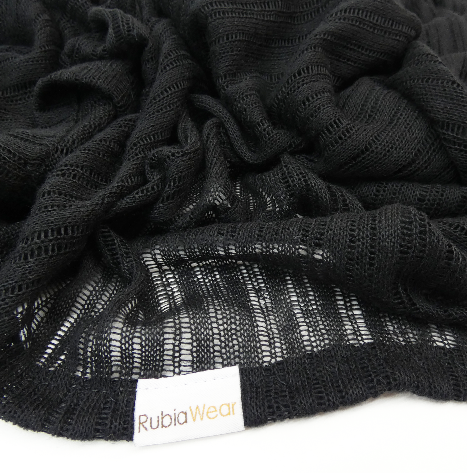The Noir Cora Wrap features a moody black hue and elegant knit pattern. Perfect for wrapping up on those long rehearsal days.