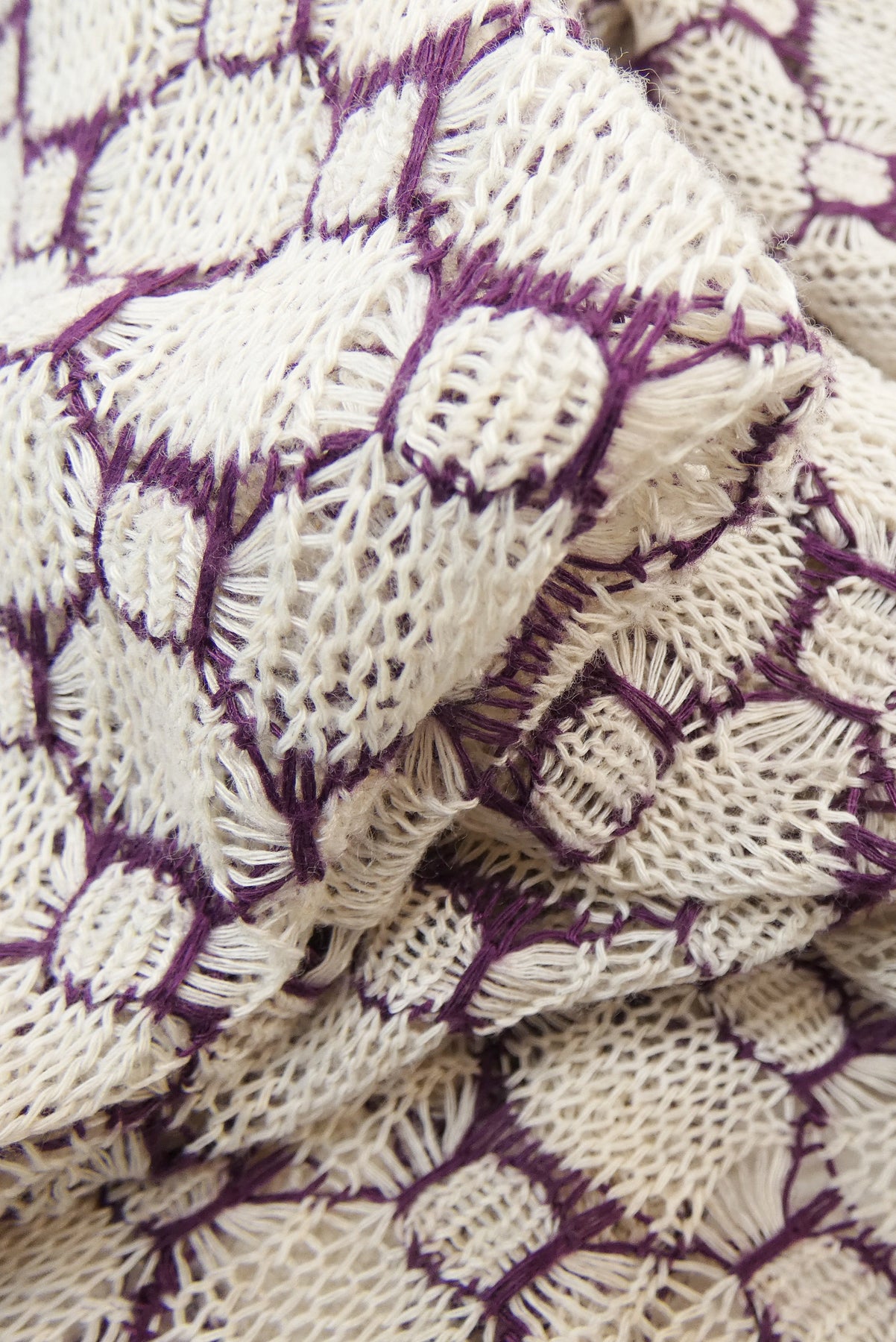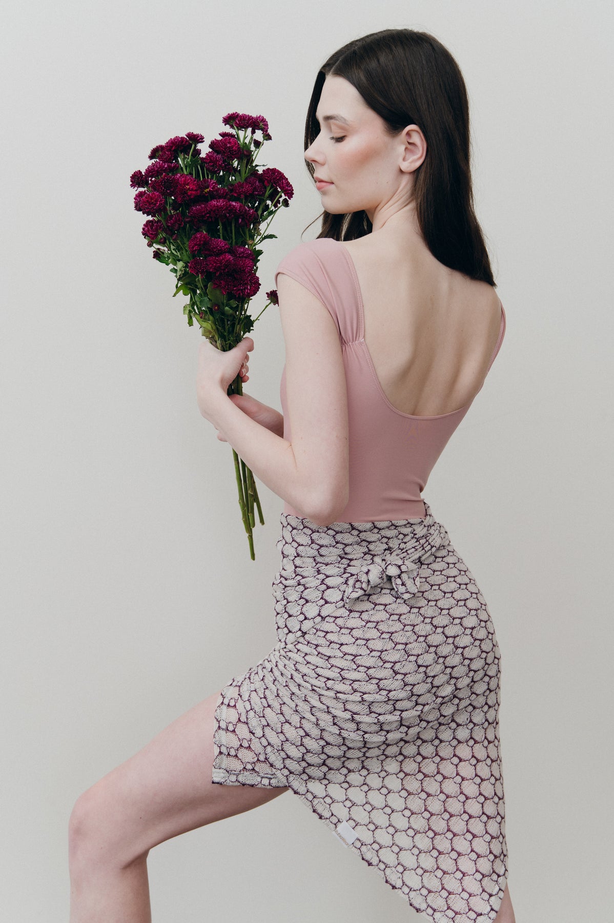 The Porcelain Plum Cora Wrap offers a whimsical design and beautiful textured fabric. Perfect for wrapping up on those in between breaks and staying warm.