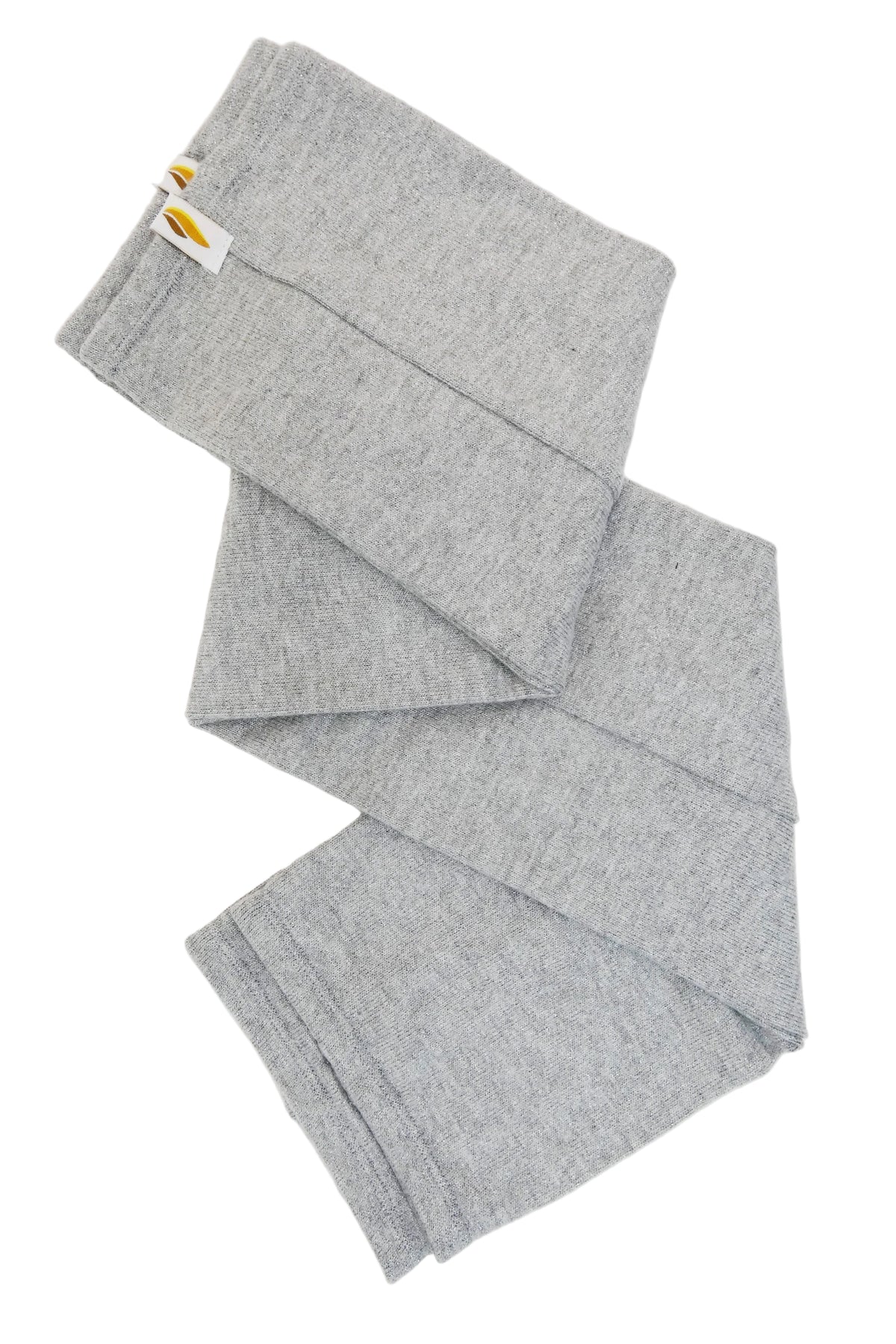 The Silver Bell Leg Warmers feature a light gray heather with a hint of sparkle and soft stretch fabric. Perfect for staying warm and a light layer for a long rehearsal day.