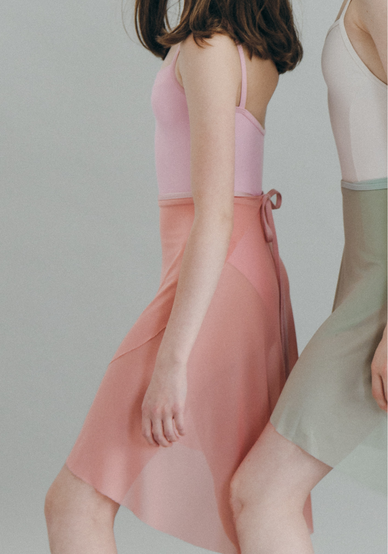 The Willa Nina Skirt features a soft pastel pink tone in lightweight, flowy fabric, perfect for adding beautiful elegance and flowy movement to your dancewear.